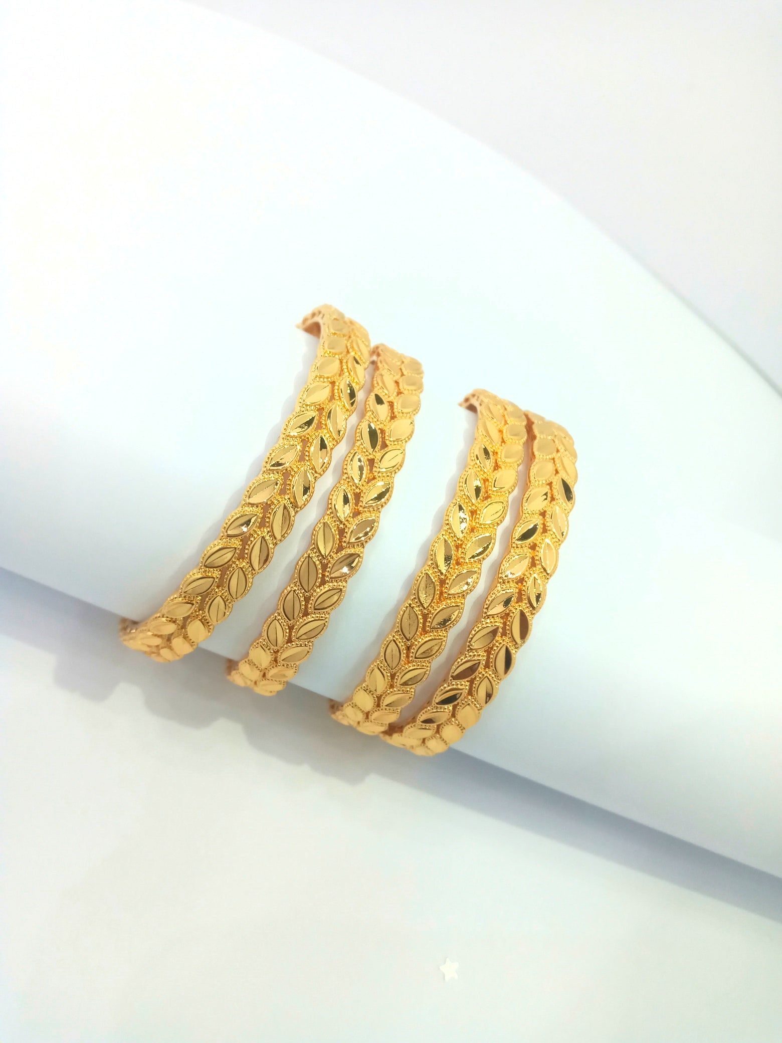 Glint presents a stunning pair of artificial gold bangles, crafted with intricate patterns to elevate your style. Perfect for daily wear or special occasions, these bangles reflect the charm of latest gold bangles design. Whether you're exploring simple gold bangles design for everyday elegance or seeking bridal bangles to complement a festive look, Glint's collection has it all.