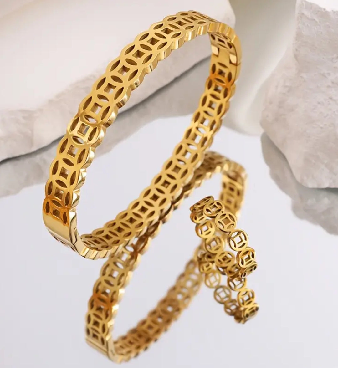 Bracelet and Ring, 2pcs Set, Stainless Steel Coin